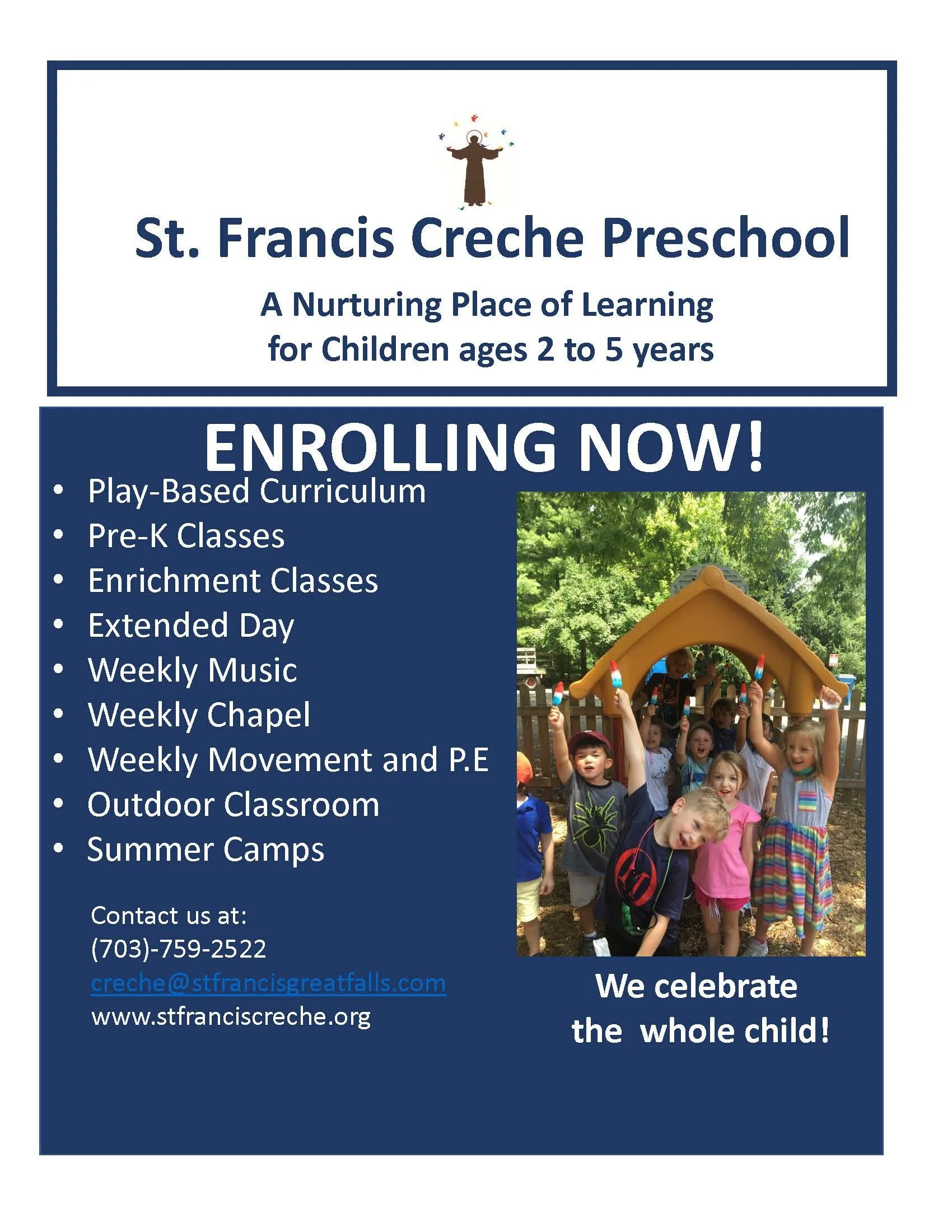 If you're interested in being baptized or having a child baptized, please email familyministry@stfrancisgreatfalls.org or call the church at 703-759-2082.